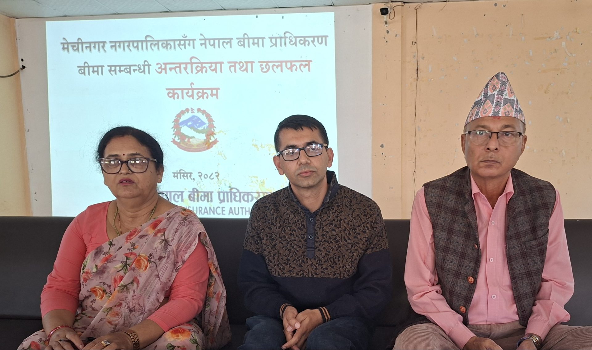 प्राधिकरणका निर्देशक निर्मल अधिकारीले छलफलको अध्यक्षता गर्दैं नेपाल बीमा प्राधिकरण नेपाल सरकारको आधिकारिक बीमा नियामक निकाय भएको बताए । नेपालमा निष्पक्ष, प्रतिस्पर्धी र भरपर्दो बीमा सेवा सुनिश्चित गर्ने प्राधिकरणको उद्धेश्य रहेको बीमितको हक हितको प्रभावकारी संरक्षण गर्न बीमाको पूर्ण नियमन गर्ने दायित्व पनि प्राधिकरणको रहेको बताए । बीमा ऐन र नियमावलीमा भएको व्यवस्था बमोजिम बीमालाई अगाडि बढाउन स्थानीय सरकार मेचीनगर नगरपालिकाले देखाएको अग्रसरताप्रति निर्देशक अधिकारीले आभार प्रकट गरे । उनले छलफलका क्रममा बीमाको महत्व, बीमा बजारको विद्यमान अवस्था र बीमा क्षेत्रको विकास एवम् विस्तारमा स्थानीय सरकारको भूमिका सम्बन्धी विचार राखेका थिए । उनले अनौपचारिक क्षेत्रका कामदार र विपन्न बर्गलाई बीमाको दायरामा ल्याउनका लागि आवश्यक व्यवस्था गर्न स्थानीय सरकारसँग आग्रह गरे ।