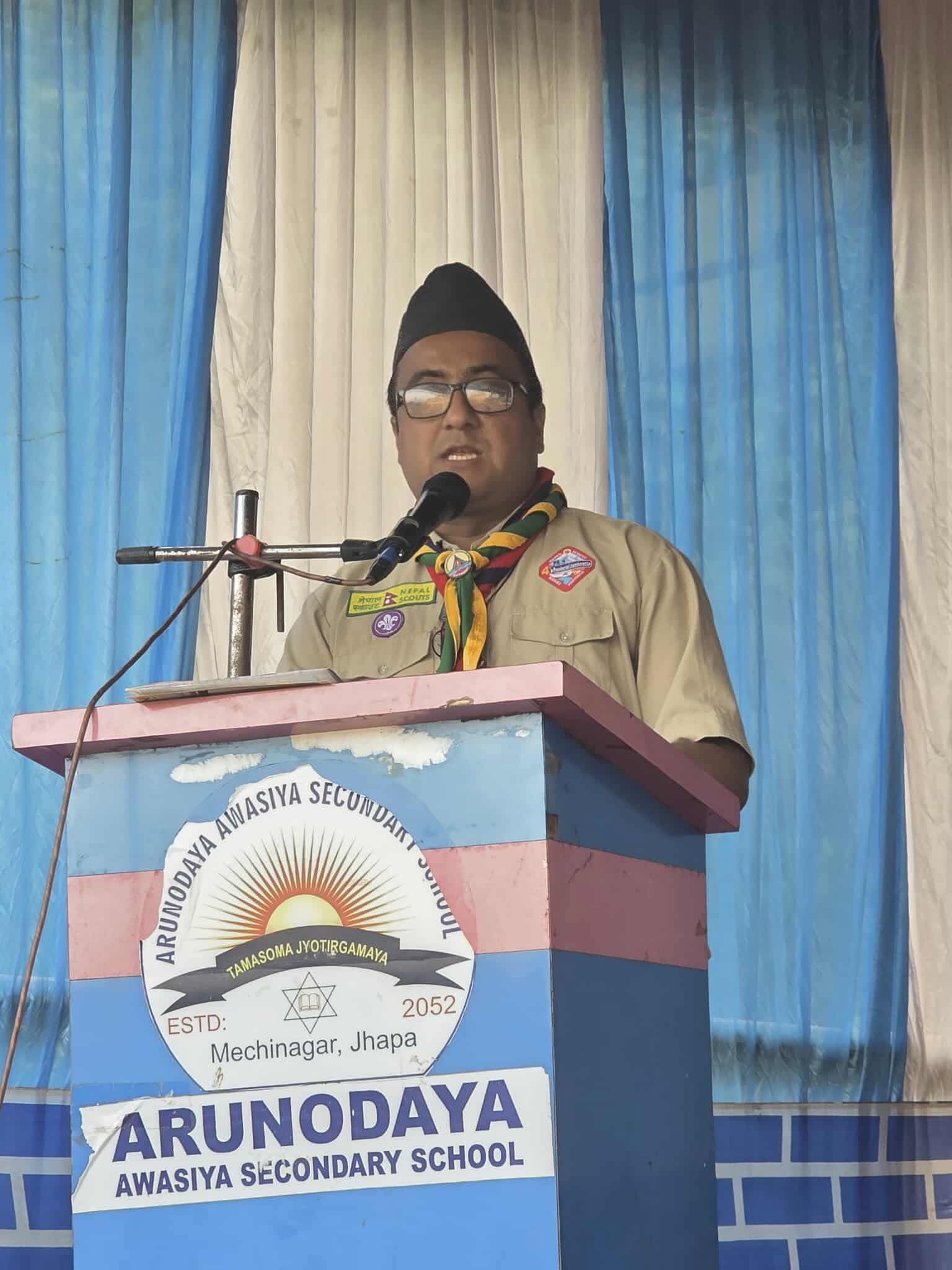 विद्यालय व्यवस्थापन समिति अध्यक्ष निर्मलकुमार अधिकारी खत्रीले स्काउटिङ्गले समाजमा एकता र नेतृत्वको भावना जगाउने बताउनु भयो।