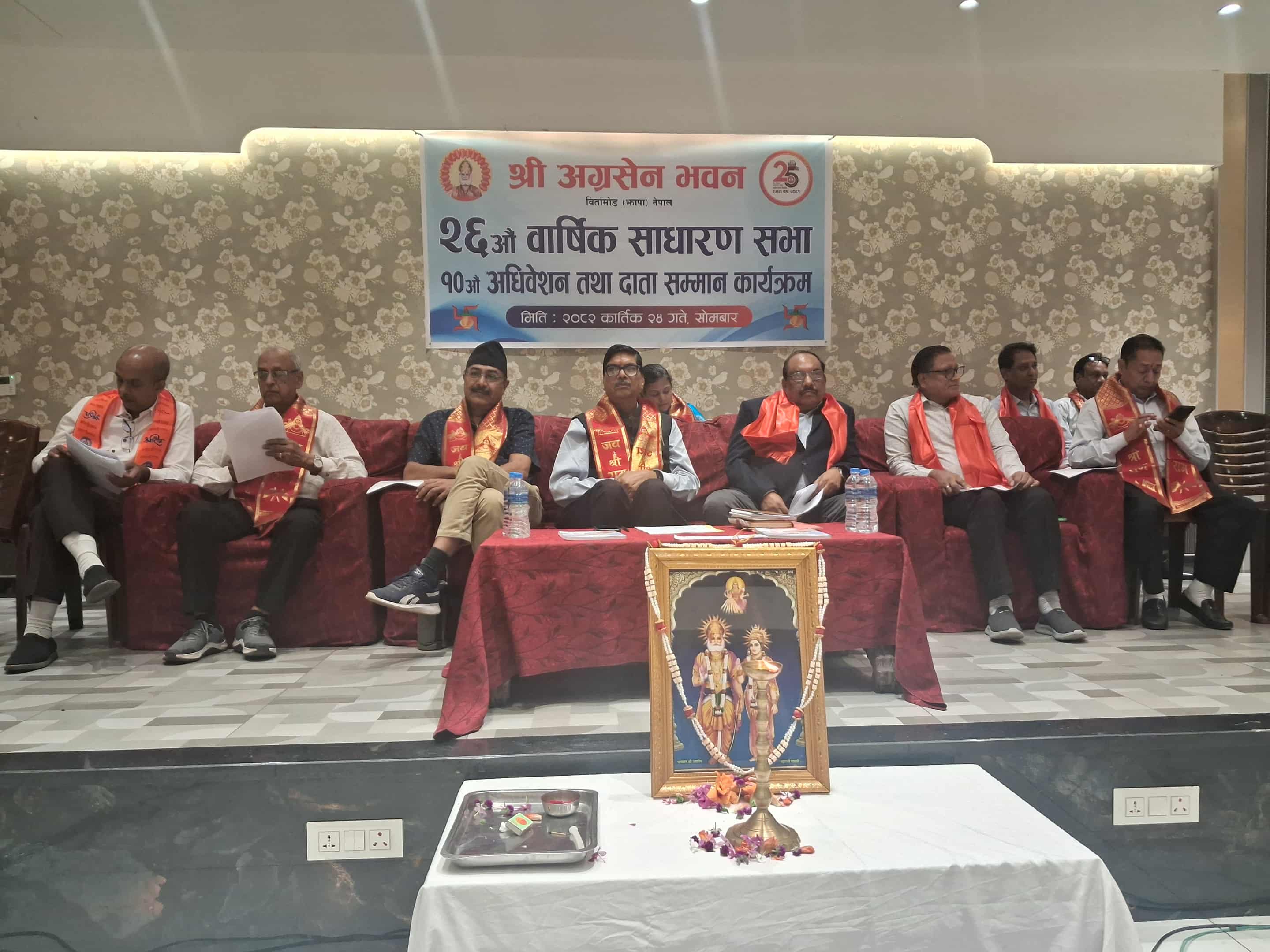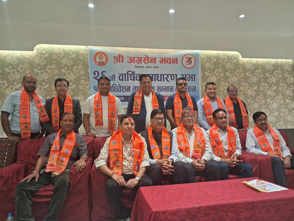२४ कात्तिक, मेचीनगर : झापाको विर्तामोडमा रहेको सामाजिक संस्था अग्रसेन भवनको आगामी तीनवर्षे कार्यकालका लागि नयाँ कार्यसमिति चयन भएको छ ।